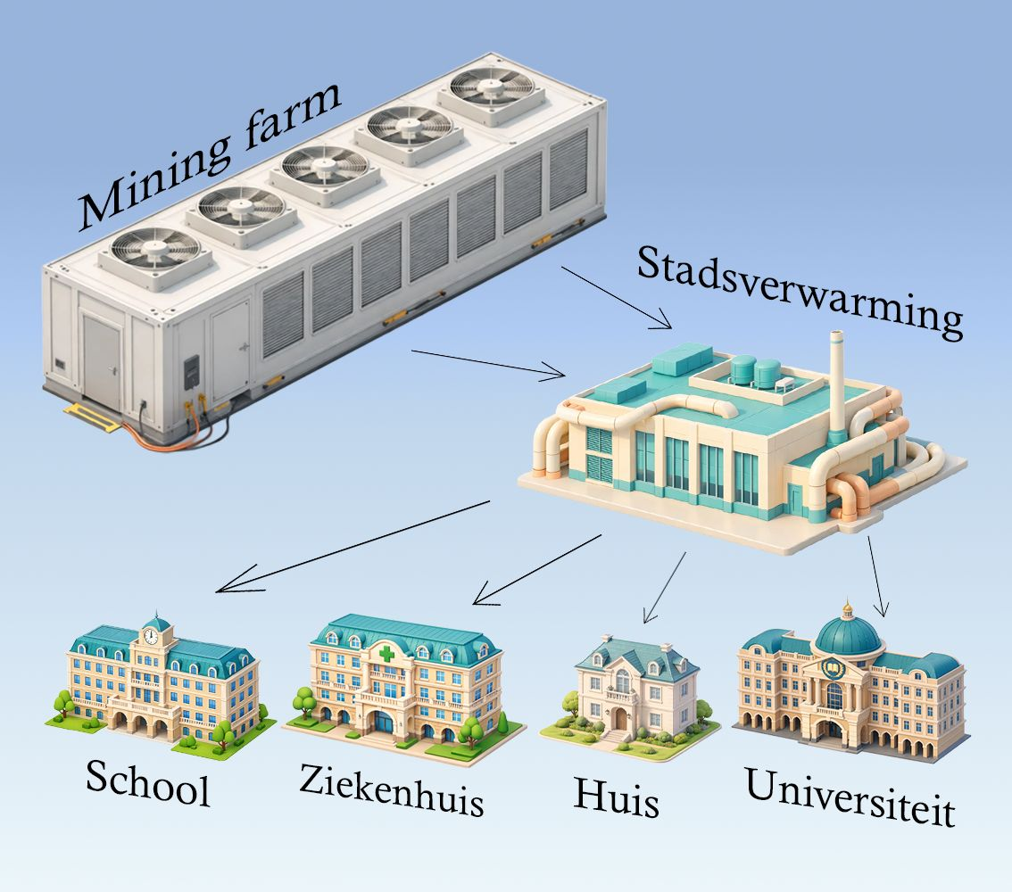 In plaats van die warmte te verspillen, wordt deze via een watersysteem teruggeleverd aan een district heating bedrijf.